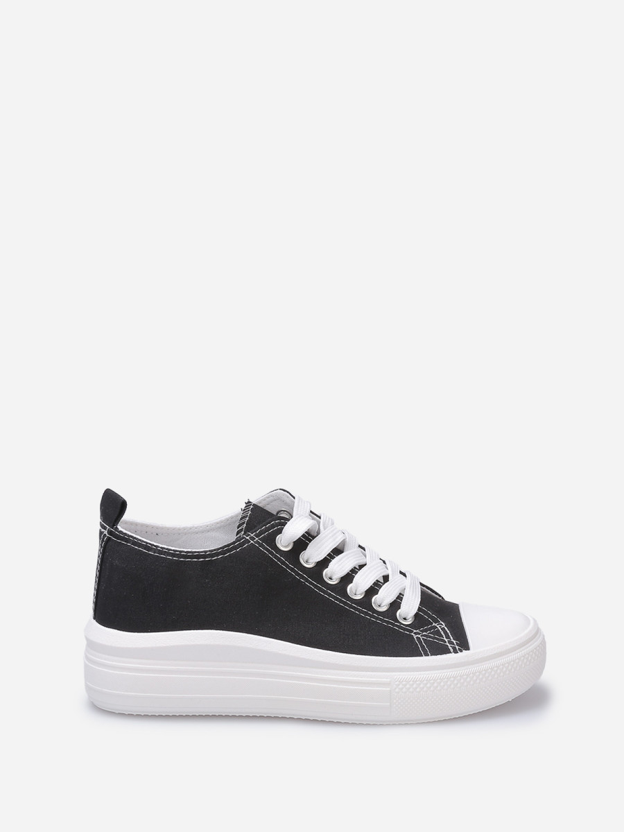 Tennis basses en toile avec plateforme et bout en gomme.
