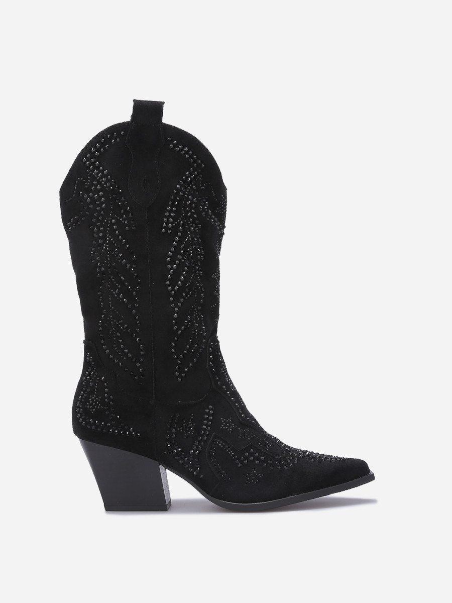 Santiags mi-hautes à strass - Noir