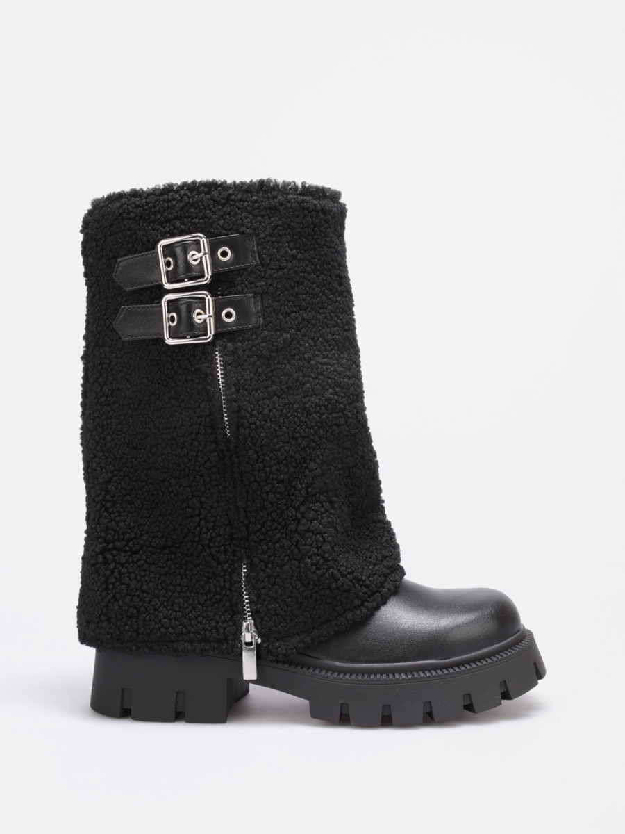 Bottes mi-hautes zippées à revers moutonné - Noir