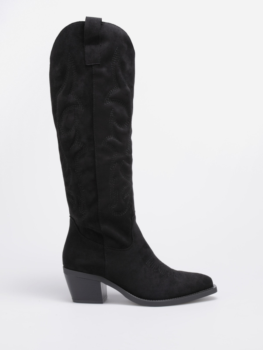 Santiags hautes en suédine à surpiqûres décoratives - Noir