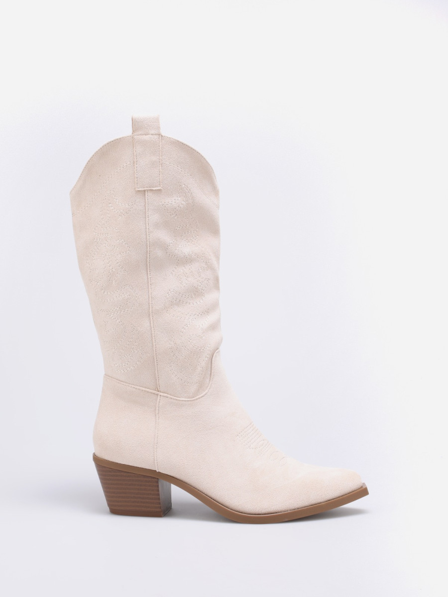 Bottes santiags en suédine avec surpiqûres décoratives.
