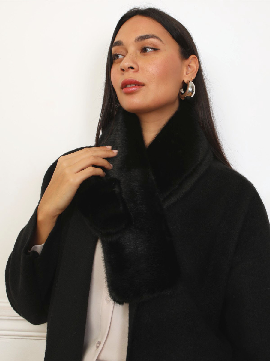 Écharpe en fausse fourrure à passant - Noir