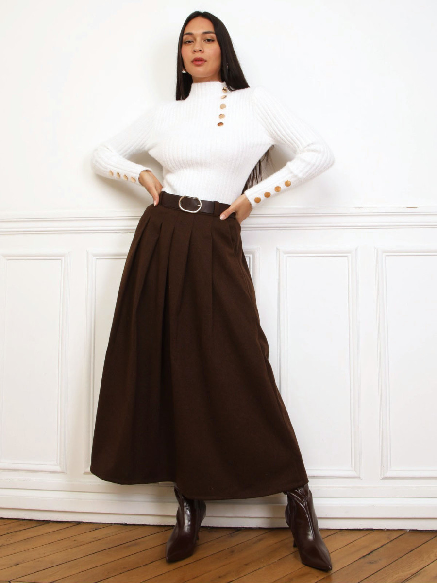 Devant un miroir, tenez-vous droite et gardez le mètre ruban parallèle au sol. Si vous hésitez entre deux tailles choisissez la au-dessus.
