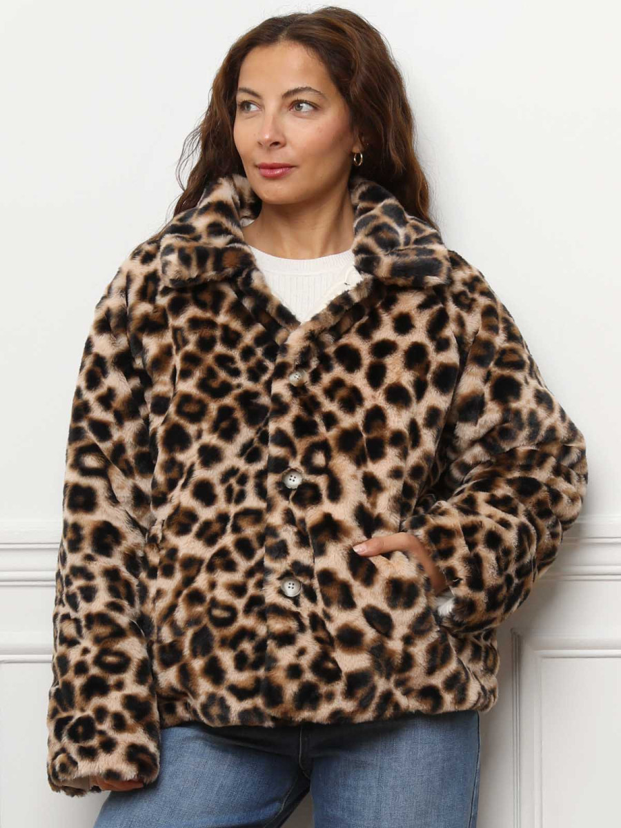 Doudoune avec face matelassée et doublure fourrée à imprimé animal.