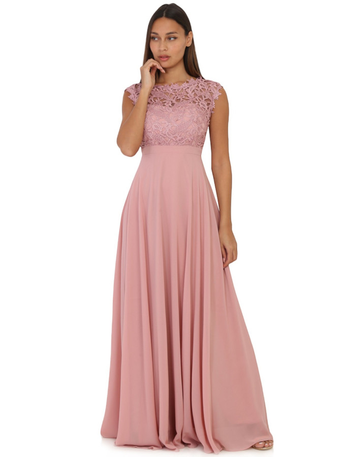 Robe longue à dentelle grandes tailles - Vieux Rose