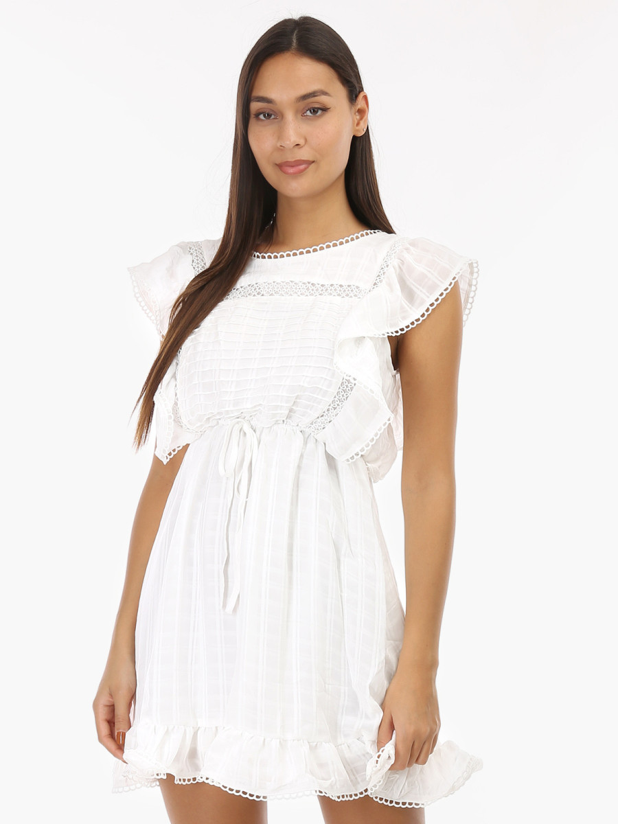 Modèle à volants sur les épaules et le bas avec nœud au dos.