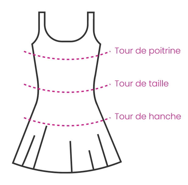 Tour de poitrine : Mesurez bien horizontalement au niveau de la pointe des seins.