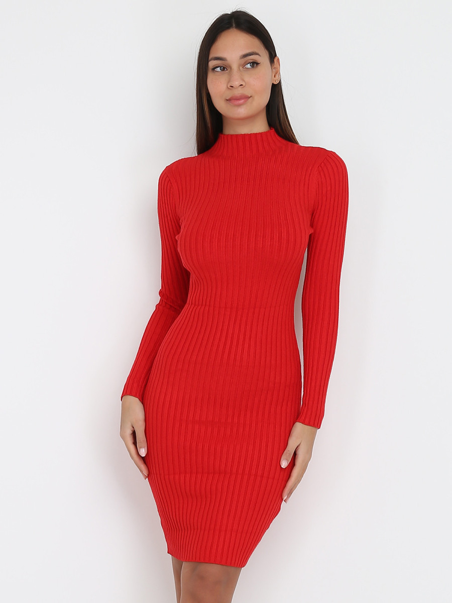 Robe pull côtelée moulante - Rouge