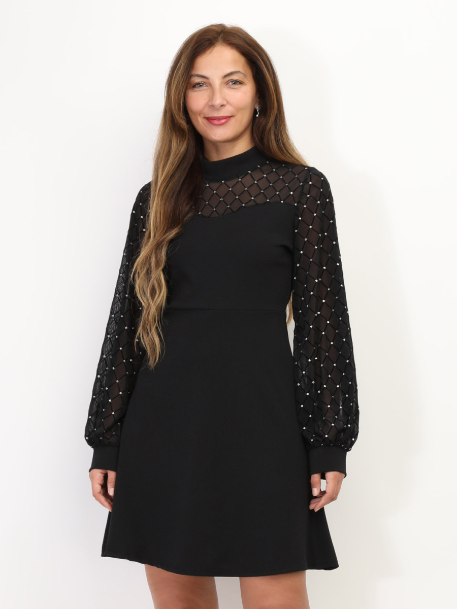 Modèle à détails en tulle à motif carreaux effet velours et pois pailletés.