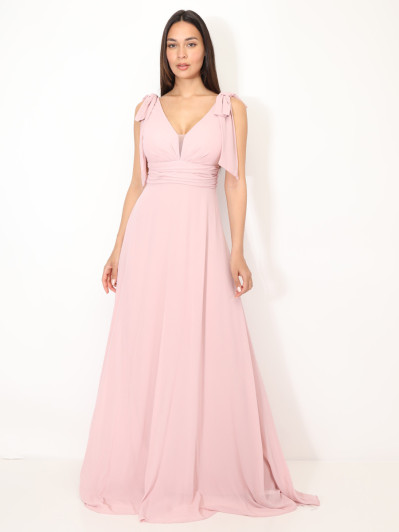 Robe de cérémonie drapée à rubans - Vieux Rose