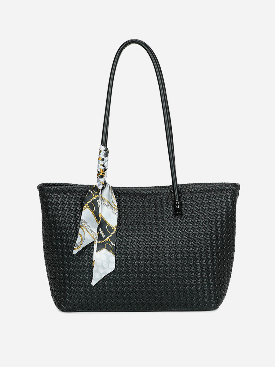 Sac cabas à motifs et foulard - Noir