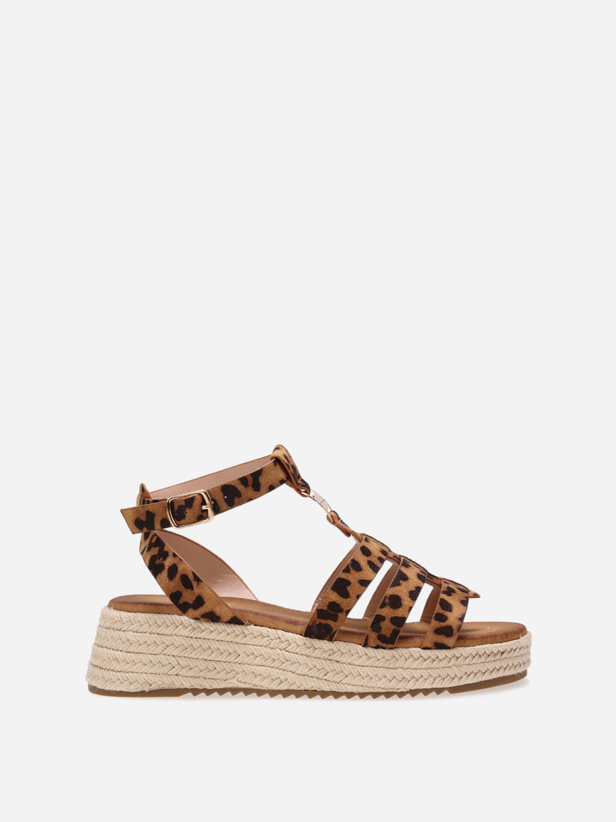 Sandales compensées à plateforme tressée - Léopard