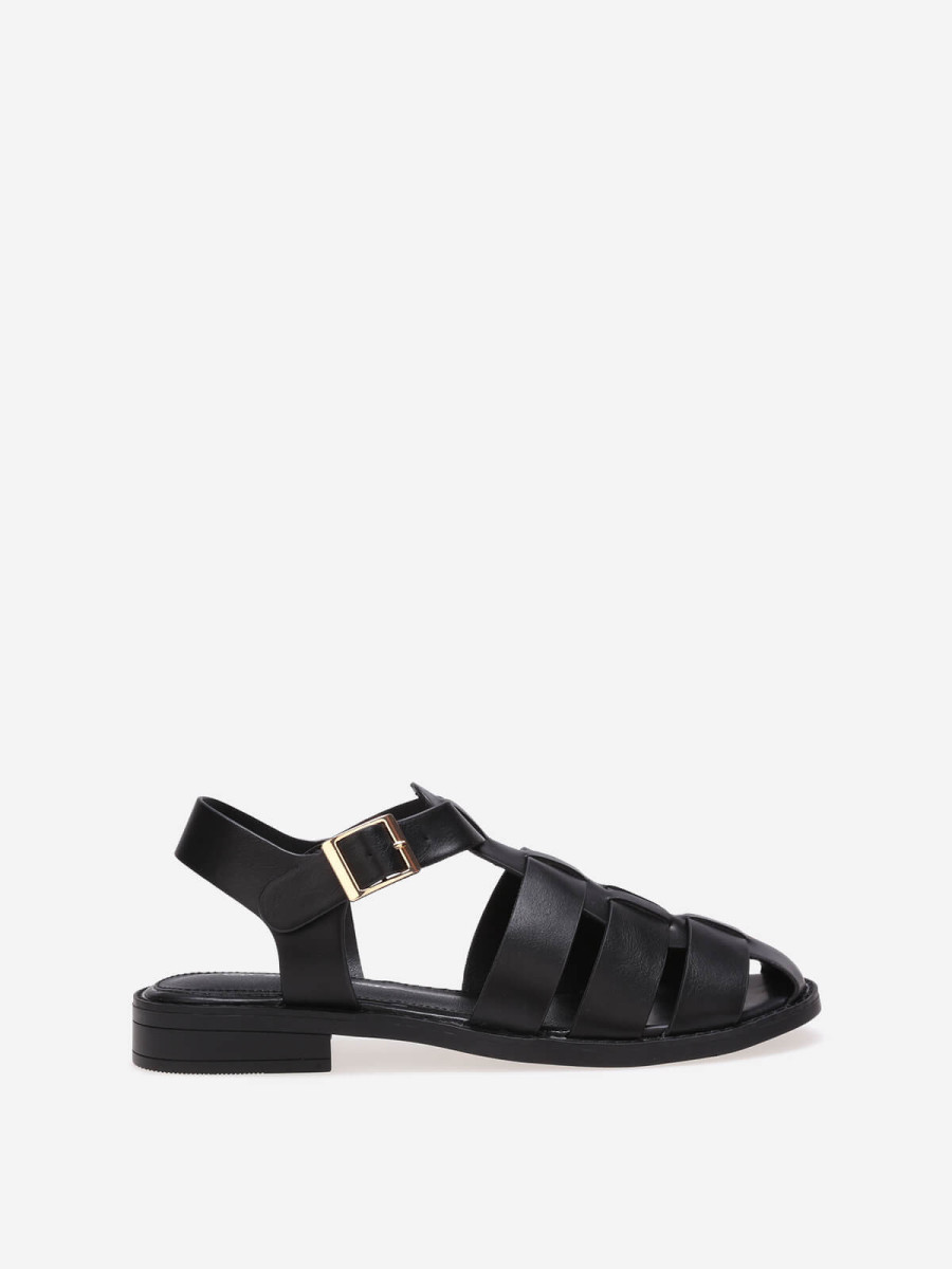 Sandales noires style méduse à bout fermé et boucle dorée - Noir
