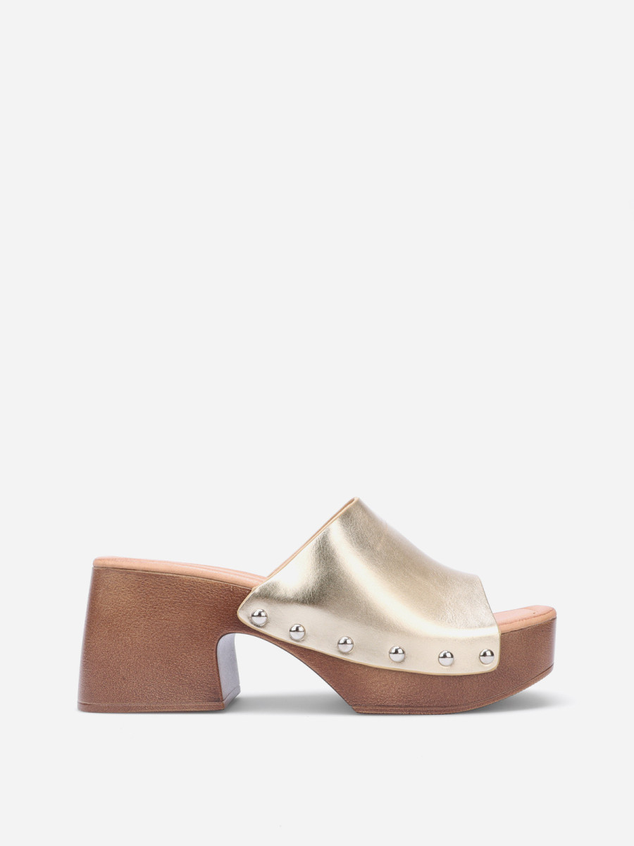Mules sabots cloutées à plateforme - Doré