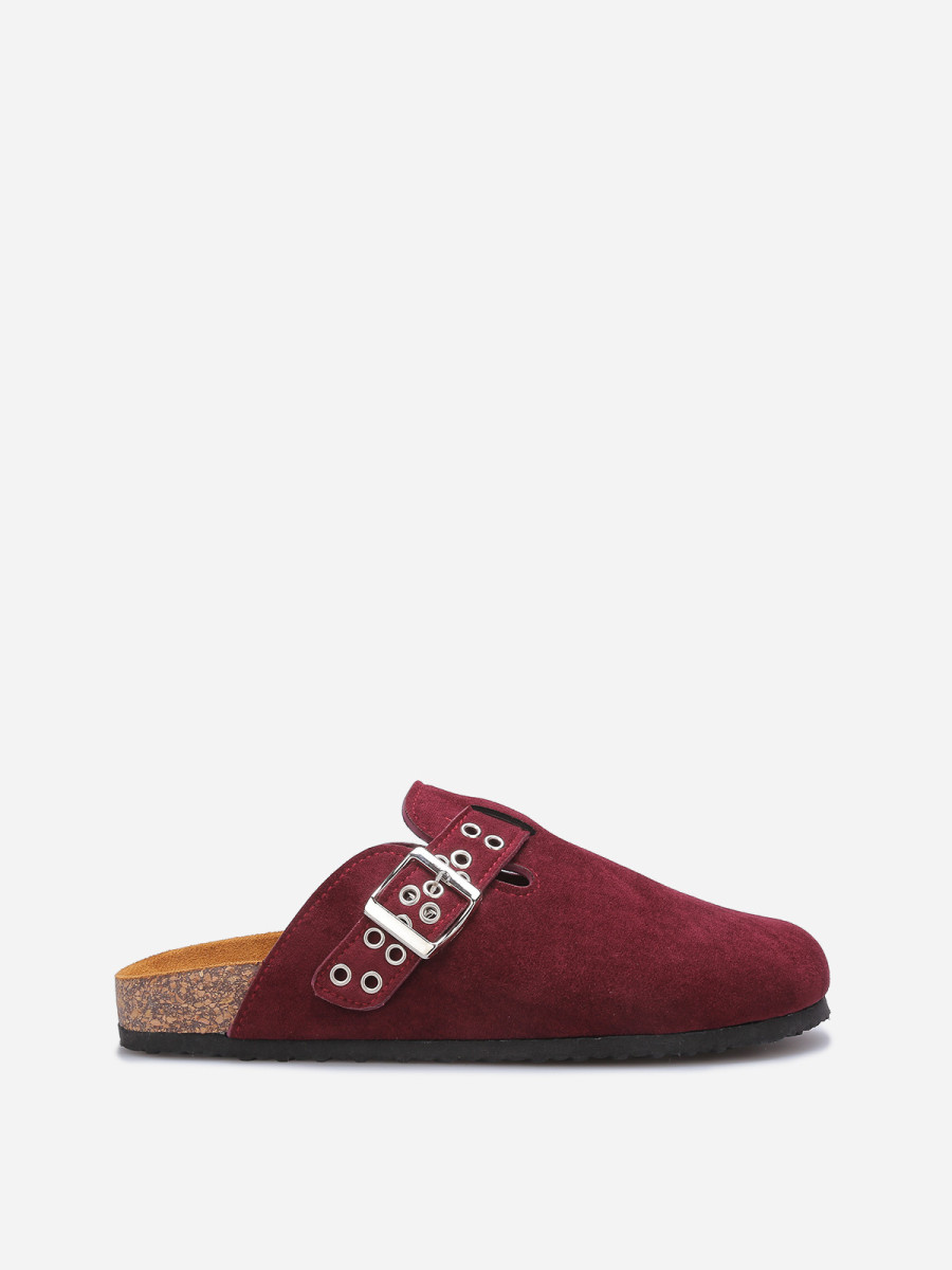 Mules en suédine à bride et boucle bordeaux - Bordeaux
